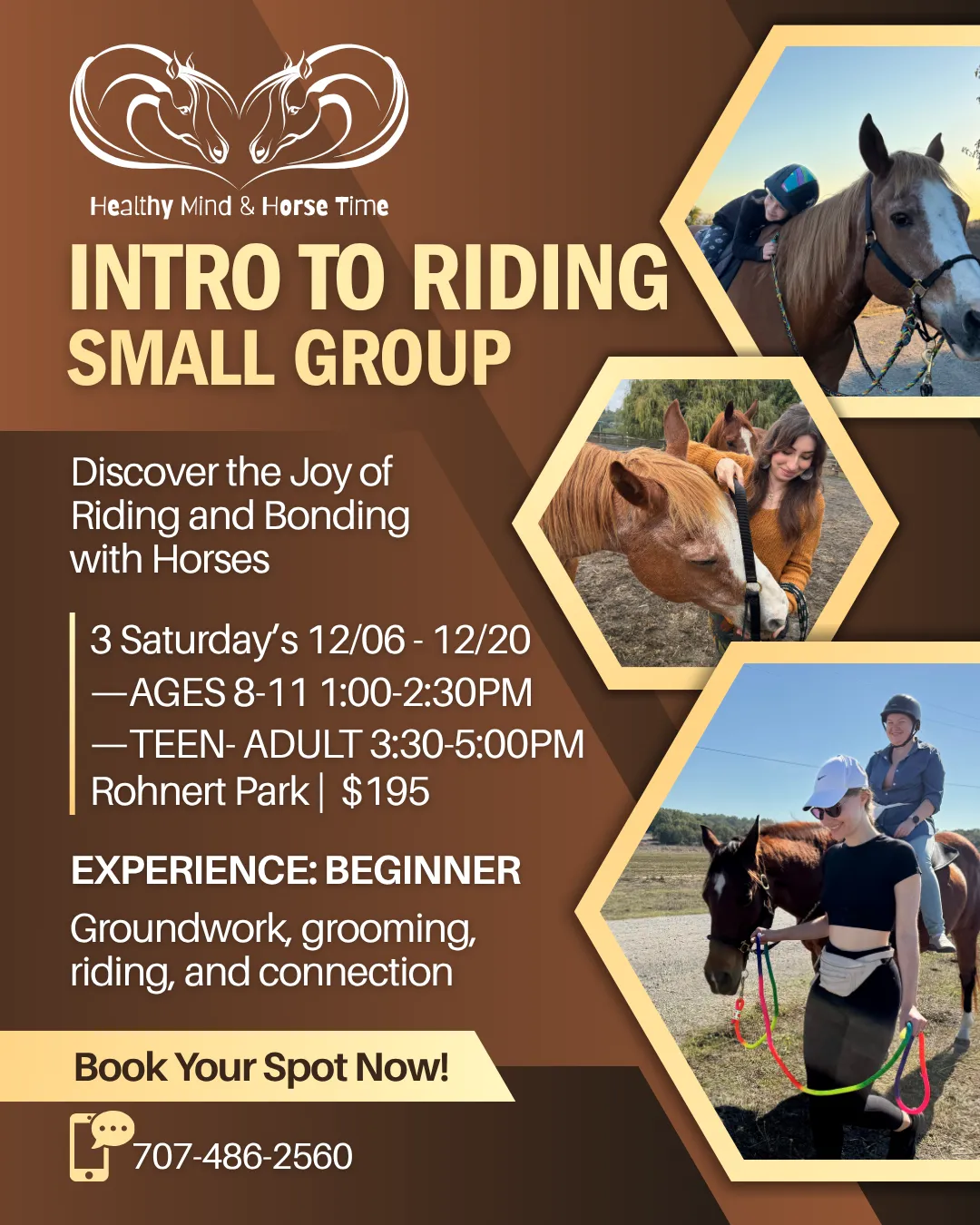 Discover peace, confidence, and connection through the gentle guidance of horses—start today by booking your Intro Lesson.